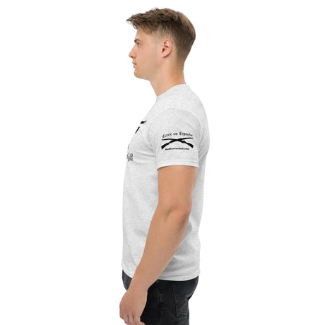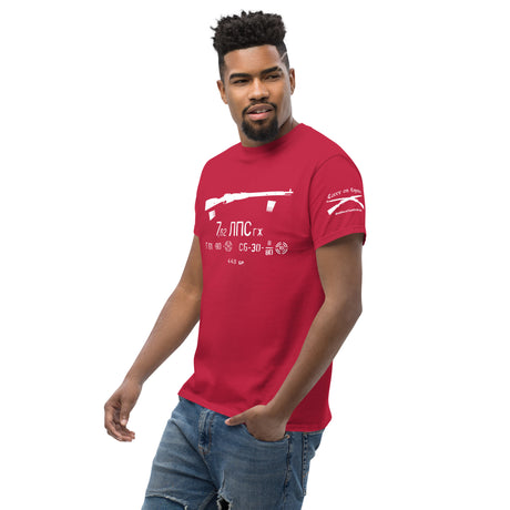 Mosin Nagant rifle cotton T-shirt with vintage ammo can labels light font